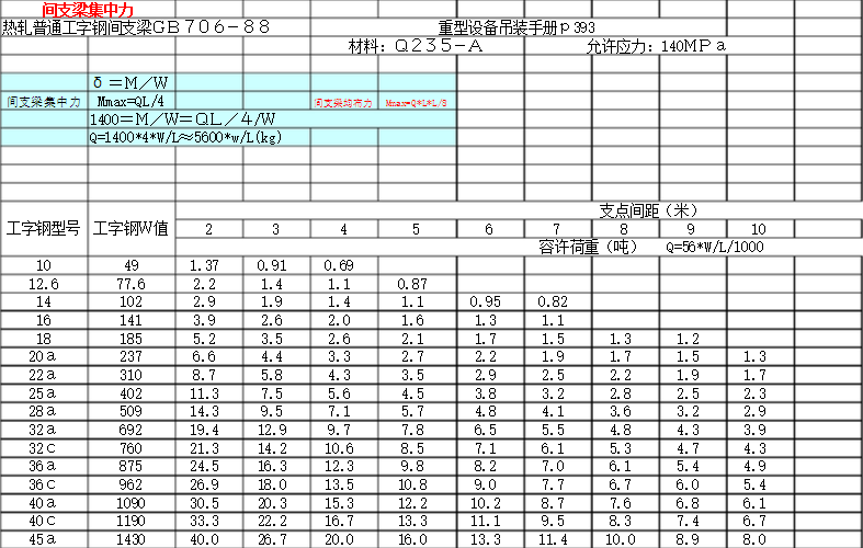 式中: Tmax为最大剪切强度。把可用剪切强度T代进去,可算出梁的最大承受载荷。